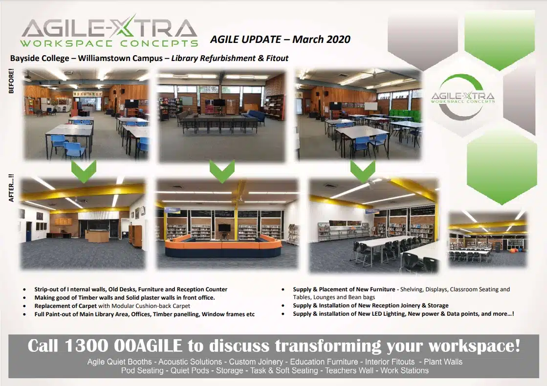 Agile-Xtra did a full refurbishment of our space including painting, blinds and office furniture. Brent lead the project from beginning to end and was always available for any queries. The cost was reasonable and the work was of a high standard.